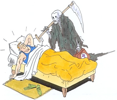 Il leur dit que c’est vraisemblablement une intoxication aux champignons. Il va rester trois jours malade. Le fils réédite son invitation. Le père doit être là pour les dix ans de mariage. Mais le père, décidément trop mal, en point ne peut y aller. Alors, ils font la fête sans lui. Le samedi soir, le père est exsangue. Ils l’emmènent cette fois directement à l’hôpital. Le praticien de service déclare que le pronostic est très réservé en soulignant que le genre de praticien auquel il a eu affaire devrait rendre son tablier. Le dimanche, le médecin hospitalier lui déclare : « Profitez de votre père, vous avez une demi-heure. Après il ne sera plus. » Il discute avec son père, comme si de rien n’était. Le père meurt dans la nuit.