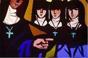« Je m’appelle Bernadette. Pour échapper aux affres de la vie je me suis faite nonne. Mal m’en prit me direz-vous. Torturée par les désirs de la chair, ma vie fut un enfer. Dans ce milieu de faire, faire faire est facile mais se faire à défaire n’est guère réjouissant. De parades on se réjouit mais on ne jouit guère. Et pourtant en oubliant ce monde de fers je suis arrivée à m’y faire et à faire luire un rayon de lumière. Par la volonté de cette lumière j’ai oublié mon état de nonne et je me suis ouverte à la vie. Mais sachez que cela n’est guère nécessaire d’être nonne pour s’ouvrir à la lumière. Sachez seulement que la lumière vient à vous si vous gardez votre cœur ouvert. En étant ouvert vers votre destin vous marcherez… »